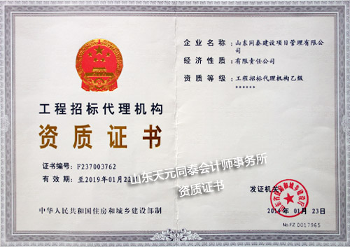 國家財政部批準的政府采購代理甲級資格 [2014-09-20]